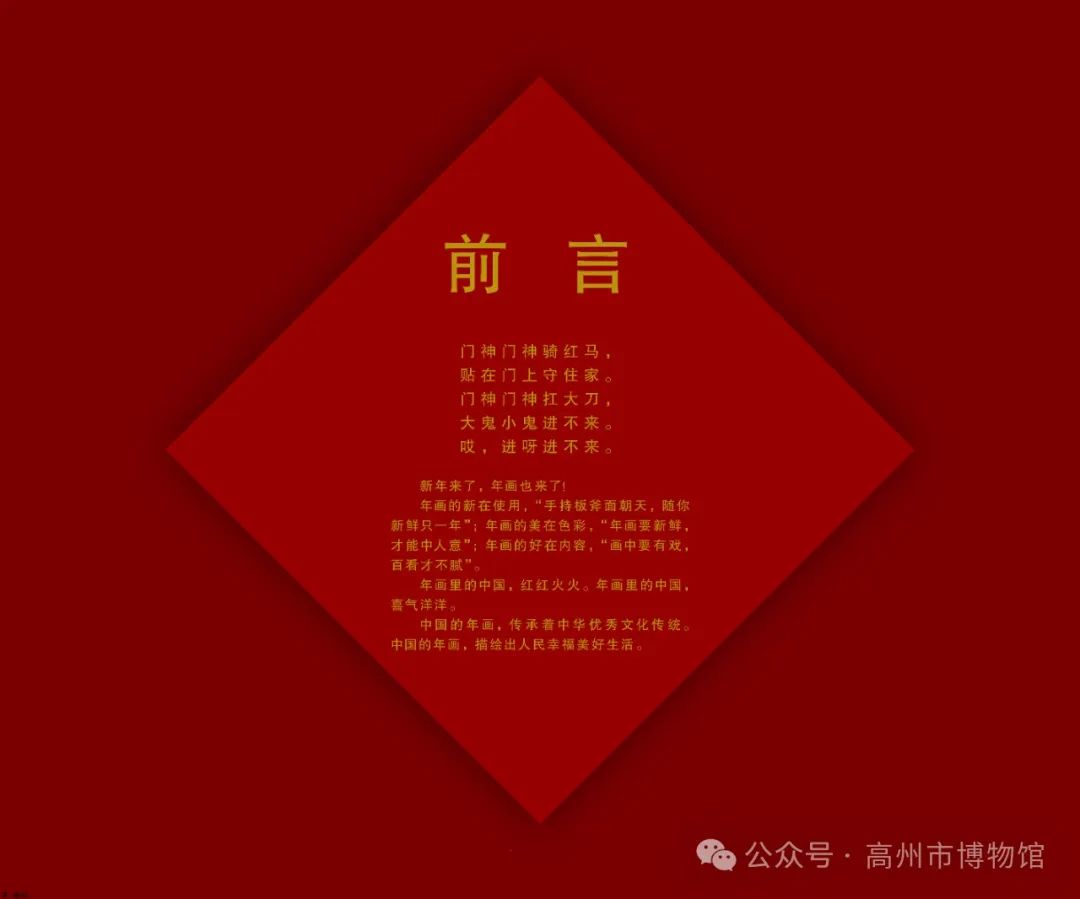 为迎接新春佳节,丰富市民群众文化生活,我馆引进广东省流动博物馆图片展览《年画里的中国》,将于2024年2月6日起在高州市博物馆展出。