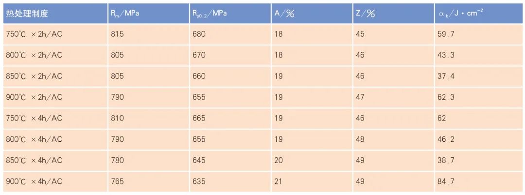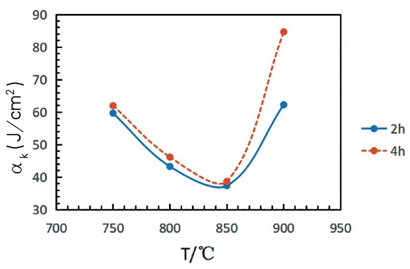 ⑶根据对热处理制度研究发现,750℃和900℃时冲击值最高,800℃时次之,850℃冲击值最低。