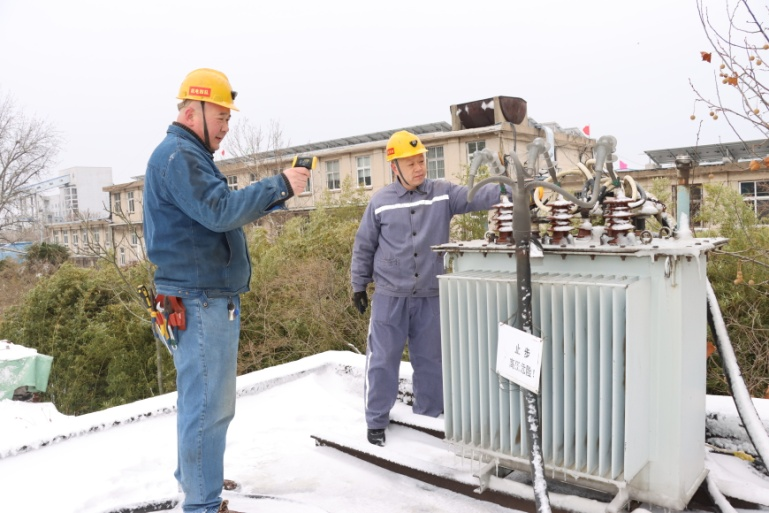 为保证供电线路安全可靠运行,机电四队迅速响应,以“雪前预警、雪中巡视、雪后检查”的原则落实各种应对措施,组织职工详细检查矿区供电线路、设备运行情况,对大负荷供电线路及变压器用红外测温仪进行测温,并重点对设备防寒、防冻、导线及设备结冰等情况进行特殊巡视。