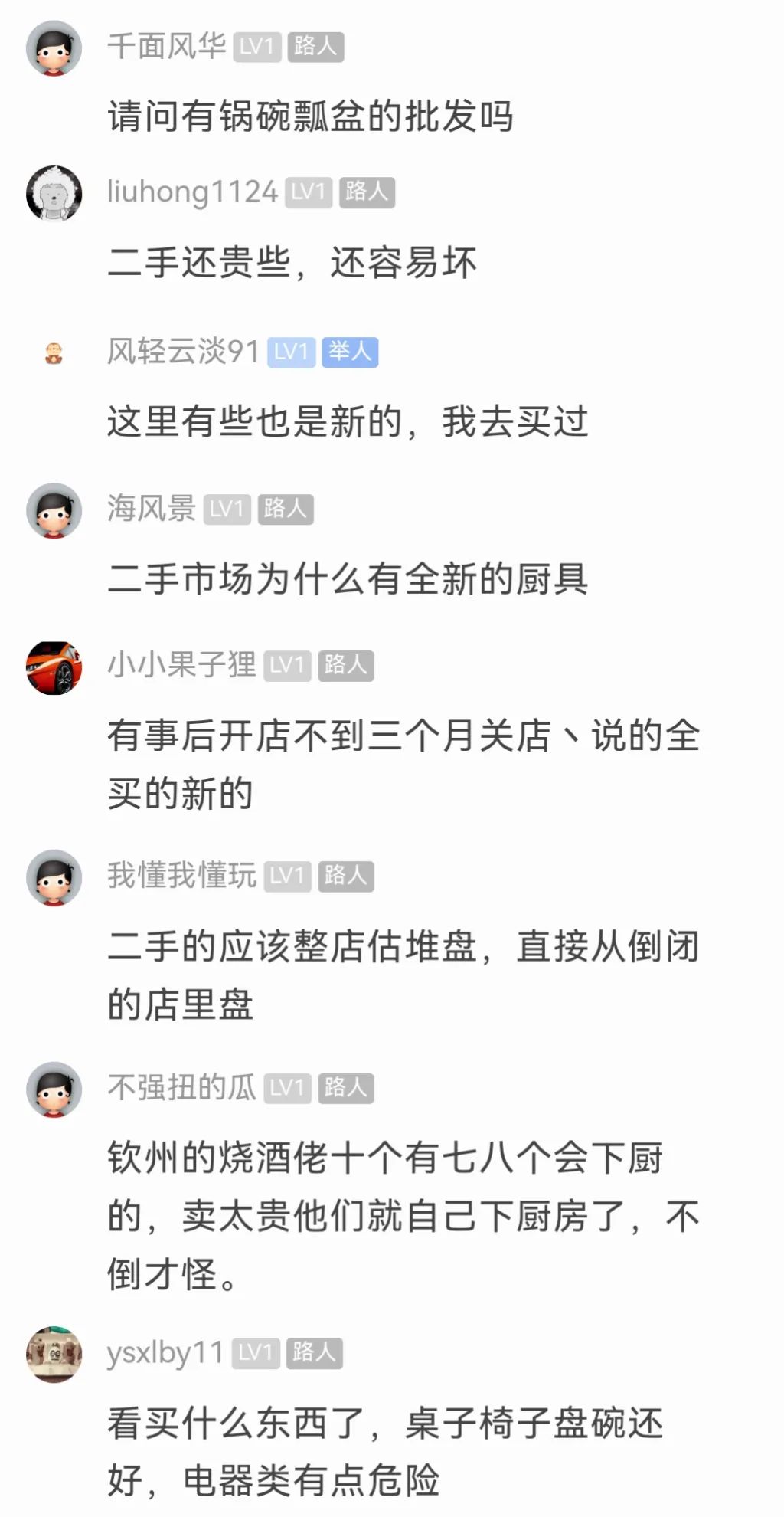 钦州现在的餐饮业太难了,很多人做了一段时间就离场。三马路长长两百米左右的街道,路边都摆满了二手厨具,有不断做来的厨具,也有来询问购买的人。餐饮业确实是一个竞争激烈、经营困难的行业。由于餐饮业的快速发展和频繁的商业变动,二手厨具在市场上一直有一定的需求。一些小餐馆、快餐店等可能会选择购买二手厨具来降低成本。二手厨具主要来源于倒闭的餐馆、转让的设备或者个人转让。这些二手厨具的品质参差不齐,有些可能很新,保养得很好,而有些可能已经磨损或者使用过度。相比全新的厨具,二手厨具的价格通常更低。但也要考虑到设备的性能、品质和维修保养等因素,做出合理的价格比较。