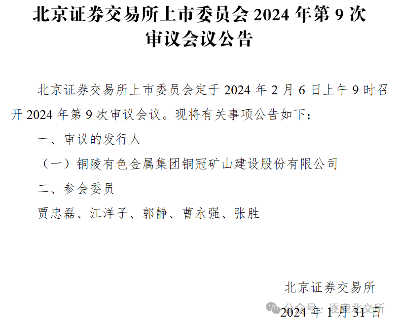 1月31日,北交所发布北京证券交易所上市委员会2024年第9次审议会议公告。