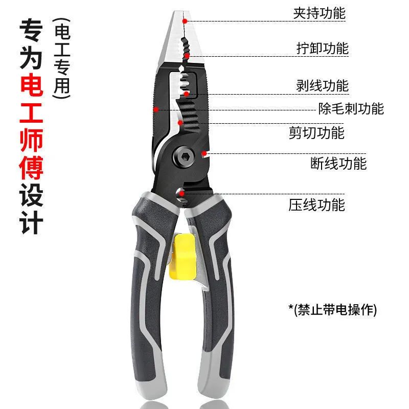 多功能设计:一把钳子,多种功能,包括剥线、剪线、拔皮、断线等,省去了携带多种工具的麻烦。