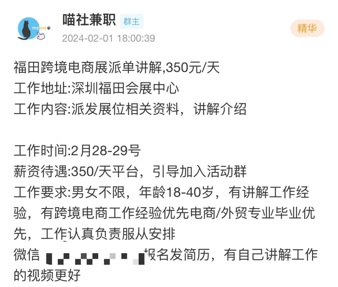 注:任何收取押金行为,一律视为诈骗!兼职报名步骤请下滑查看,根据步骤添加负责人微信询问即可,如遇负责人不回复/微信号不存在(对方关闭了微信号加好友)等情况,都可能是活动已满人,请勿频繁询问/添加好友,谢谢合作!