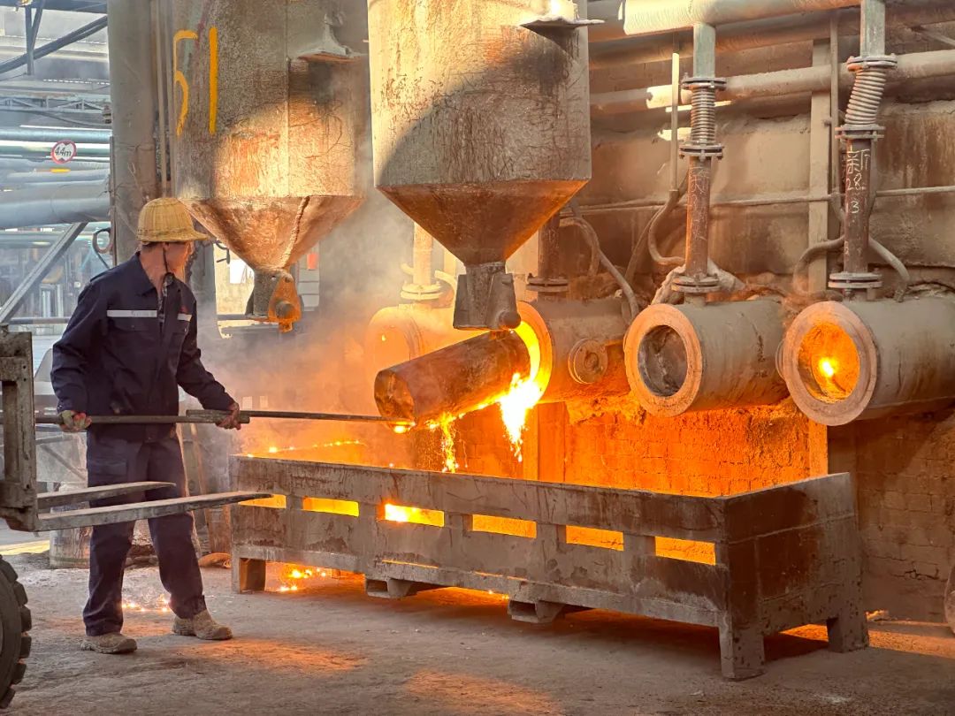眼下正是寒冬时节,走进位于新星经济技术开发区的新疆班超镁业有限公司,一股热浪扑面而来,一排排高温炉正冒着红光,生产工人不断从炉子里取出烧制好的粗镁,并铲出废渣。