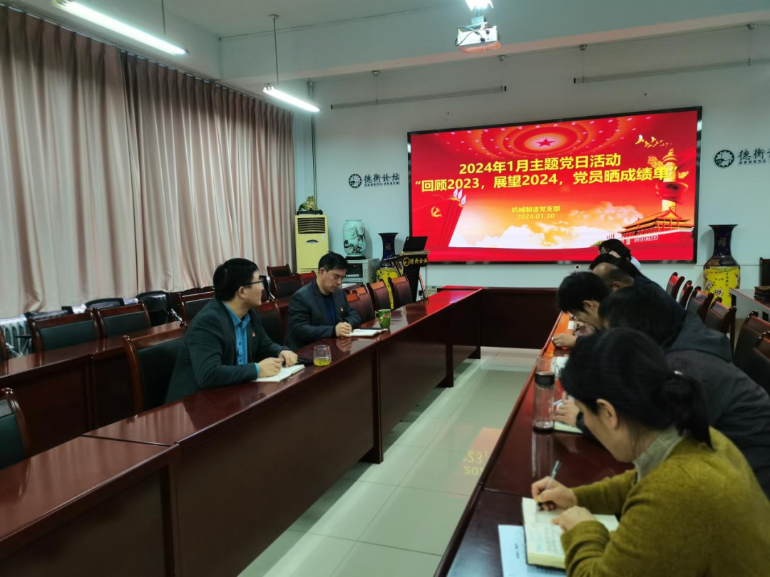 1月30日,机械制造党支部在机电楼A217会议室开展了“回顾2023,展望2024,党员晒成绩单”主题党日,机械制造党支部全体党员参加了活动,活动还邀请了机械制造系的党外教师一起参加。学部党委书记吴笑兵、正处级组织员周玮玲、学部副主任杜劲出席。活动采取线上线下相结合的形式进行,由机械制造支部书记衣明东主持。