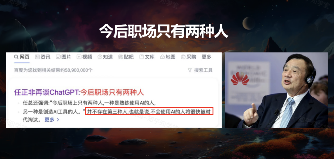 “今后职场只有两种人:创造AI的人和熟练使用AI的人。”