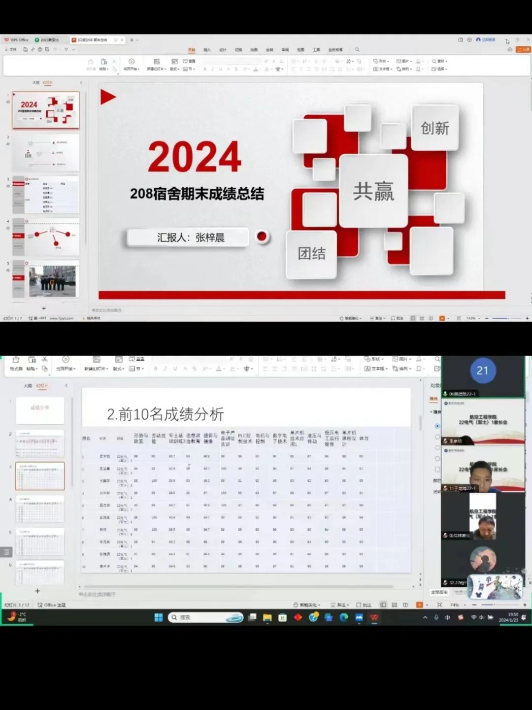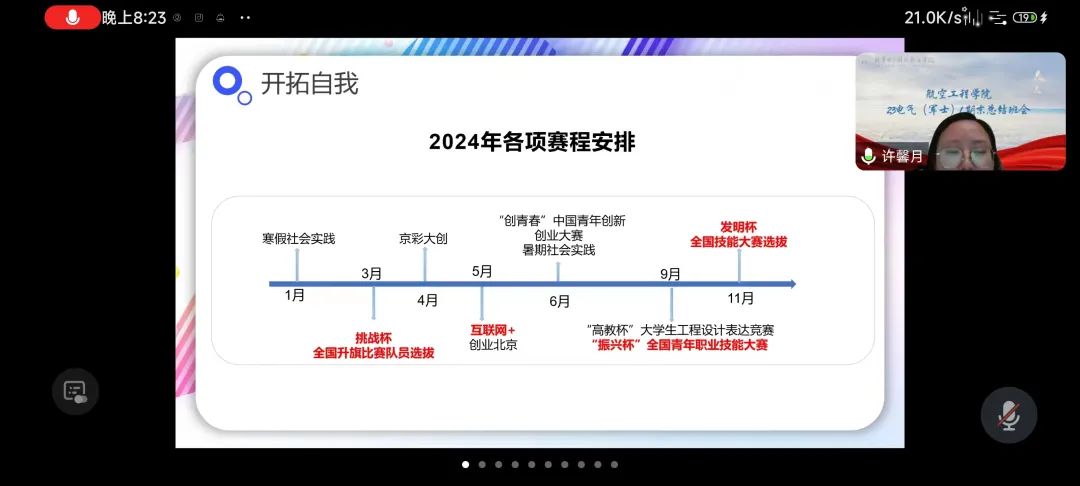 2024年1月23日,22电气(军士)1在线上举办了期末总结家长会,会议由班长张帅主持,全班同学、家长、辅导员以及班主任共同参与了本次会议。本次会议旨在全面盘点本学期同学们在专业学习、军事素养、学生活动等方面的表现,寻找优点与不足,为下一段学涯规划与目标定位提供依据。