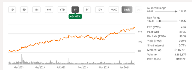 在非公认会计准则基础上,该股的FWD市盈率为29倍。与整个市场或其相近的同行相比,这样的倍数也很昂贵。例如,RTX目前的市盈率仅为16.8倍(同样是基于FWD)。因此,在当前情况下存在相当大的估值风险。