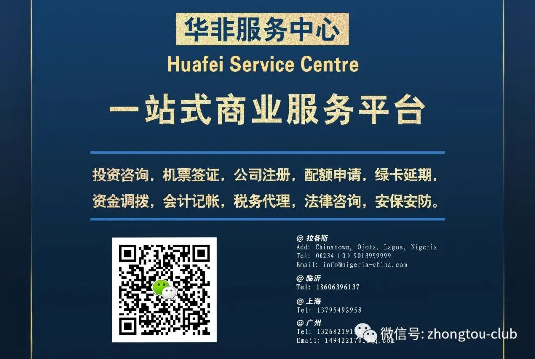 更多资讯请参阅 尼日利亚华非网 www.nigeria-china.com 和 华非微信公众号:中投发展俱乐部zhongtou-club、华非传媒通讯社huafeimedia