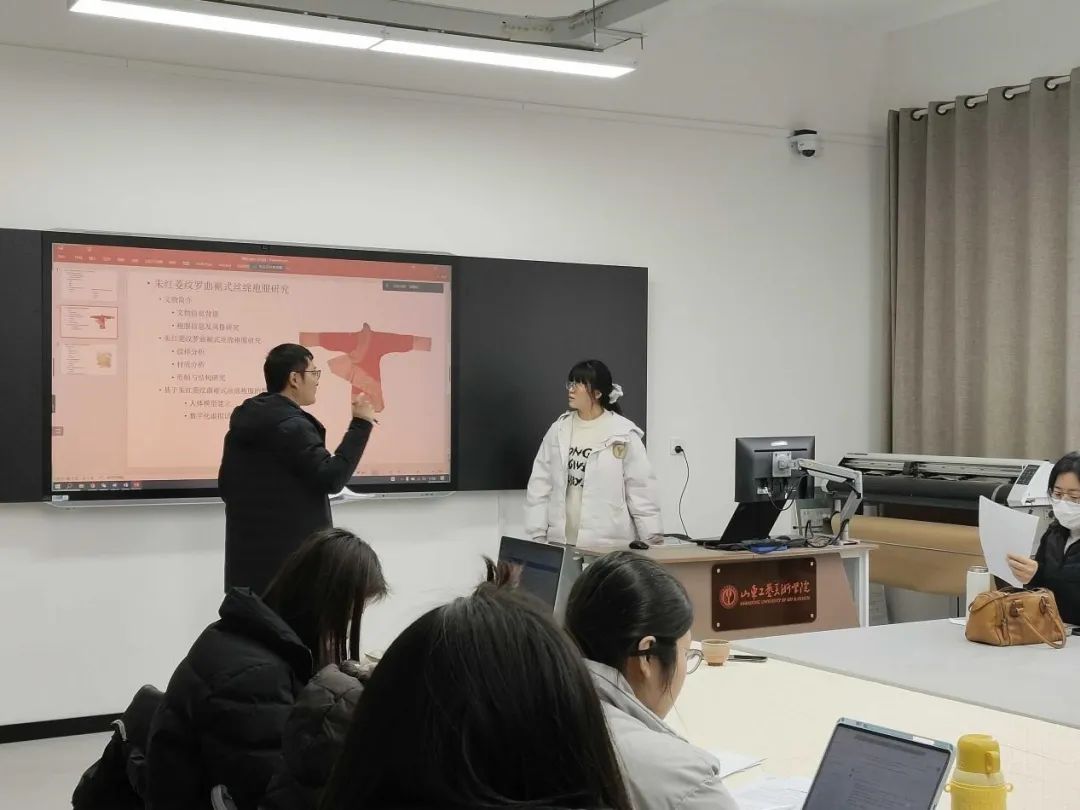 为优化和提升毕业生毕业论文质量,2024年1月8日上午八点至下午两点,服装设计与工程专业教研室采取线下线上同时与会的形式,于318教室组织举行了2020级本科毕业论文预开题报告会,杨奇军、骆顺华、曹佳想、范春红老师参加指导了汇报,其中杨奇军老师远程线上进行指导。