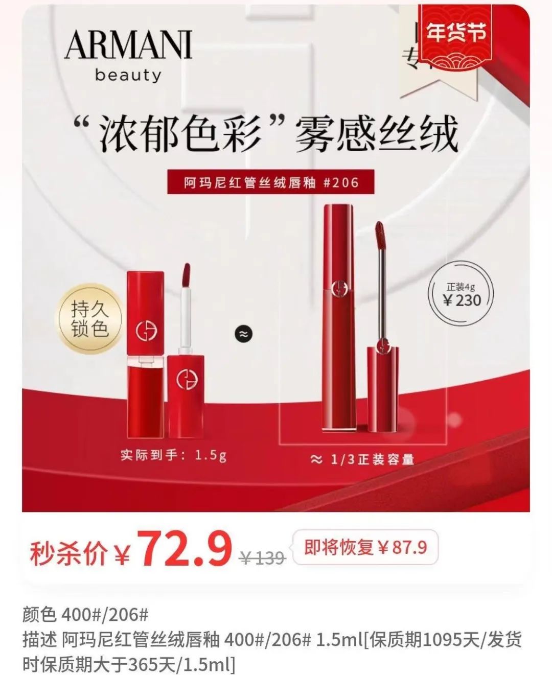 阿玛尼400,很高级的颜色