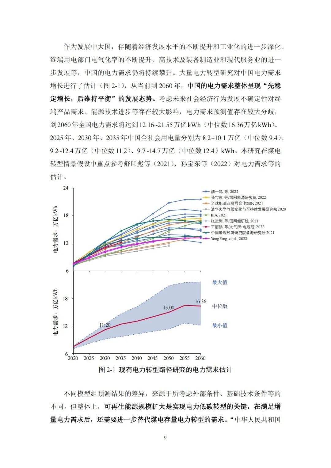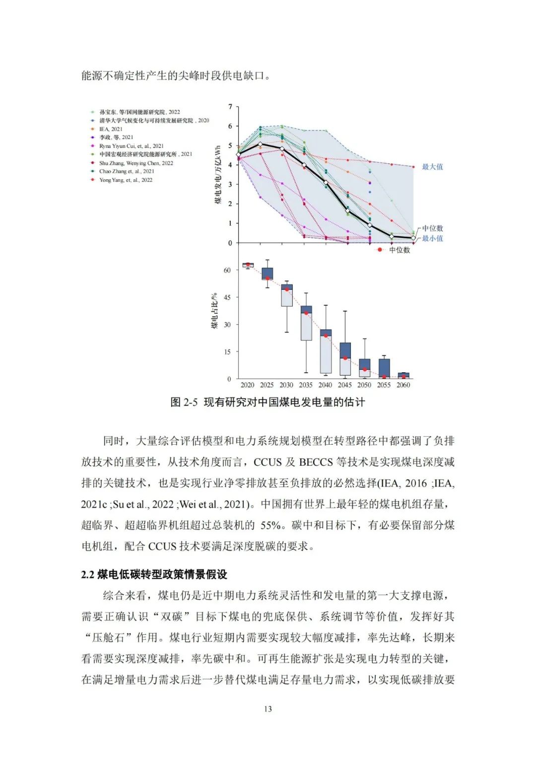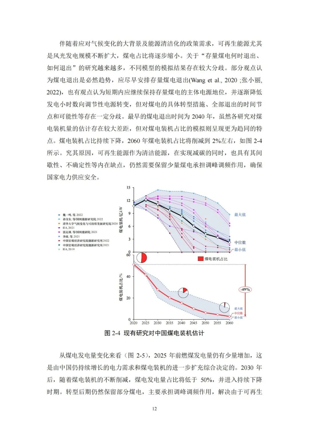 2045 -2060 年为巩固完善期,2050年前后用电需求达到饱和,煤电完全转变为系统调节性电源,服务于高比例可再生能源消纳,并提供应急保障和备用容量。