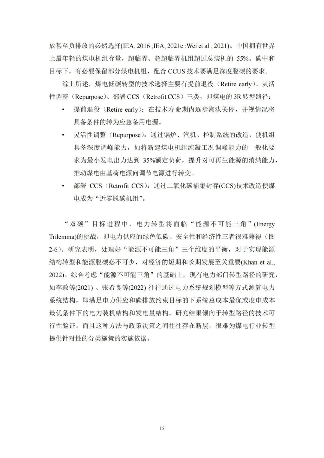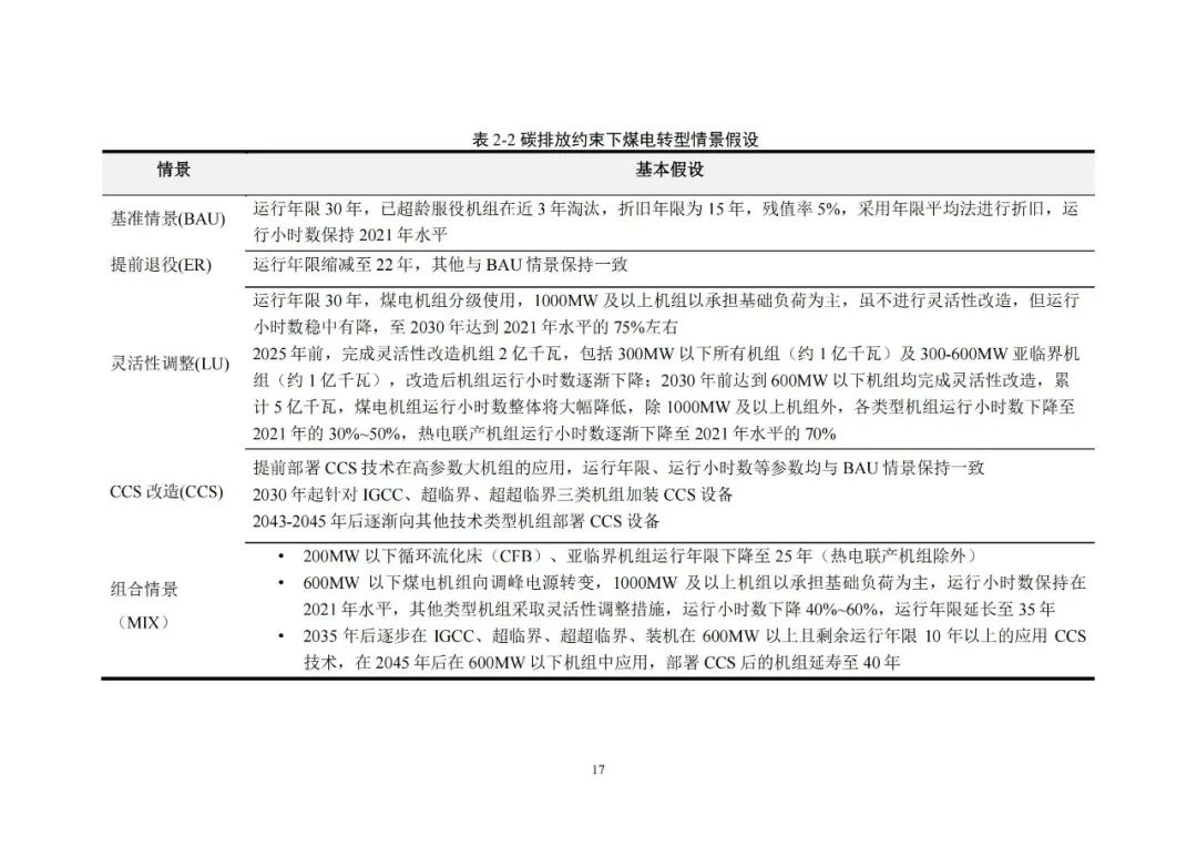 3、转型建议:煤电转型需要处理好短期和中长期之间的关系,明确不同时期煤电的功能定位与价值,并据此制定转型时间表和路线图。各省煤电总体规模、机组结构、服役年限等水平参差不齐,需要避免一刀切,结合不同区域煤电特征、电力供需平衡条件,因地制宜的确定转型路径。在煤电达到设计运行寿命之前的近 20 年转型窗口期内,需加快可再生能源开发利用,增强可再生能源消纳能力,推动风光互补、水火互济等多能互补。