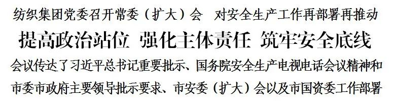 天津纺织集团党委召开常委(扩大)会 对安全生产工作再部署再推动