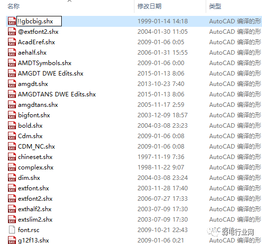 找到gbcbig.shx字体,前面随意加个符号,例如加个!!或者@都行。