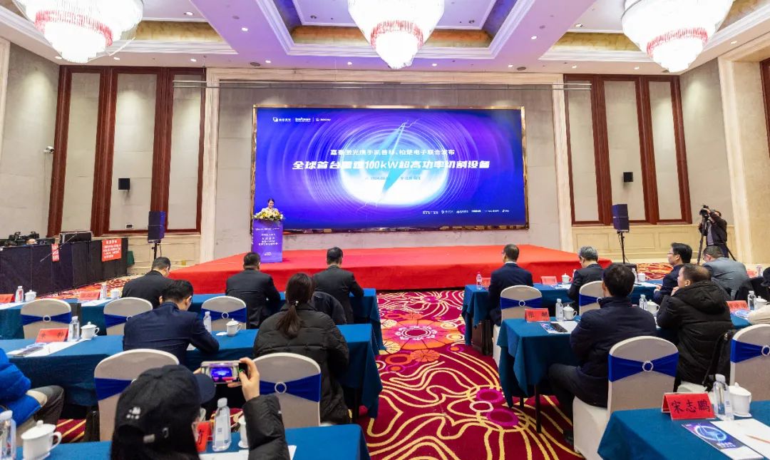 2月1日,嘉泰激光携手凯普林、柏楚电子在江苏宿迁联合发布全球首台雷霆100kW超高功率切割设备。宿迁市宿城区委常委、宿城经济开发区党工委书记、激光产业园党工委书记秦永辉,宿城经济开发区党工委委员、激光产业园主任徐菲菲,中国光学学会激光加工专委会秘书长陈超、北京工业大学教授王璞、嘉泰激光总经理郑长和、凯普林光纤事业部轮值总经理赵巨云及众多行业精英、媒体人士共同见证了这次盛会。