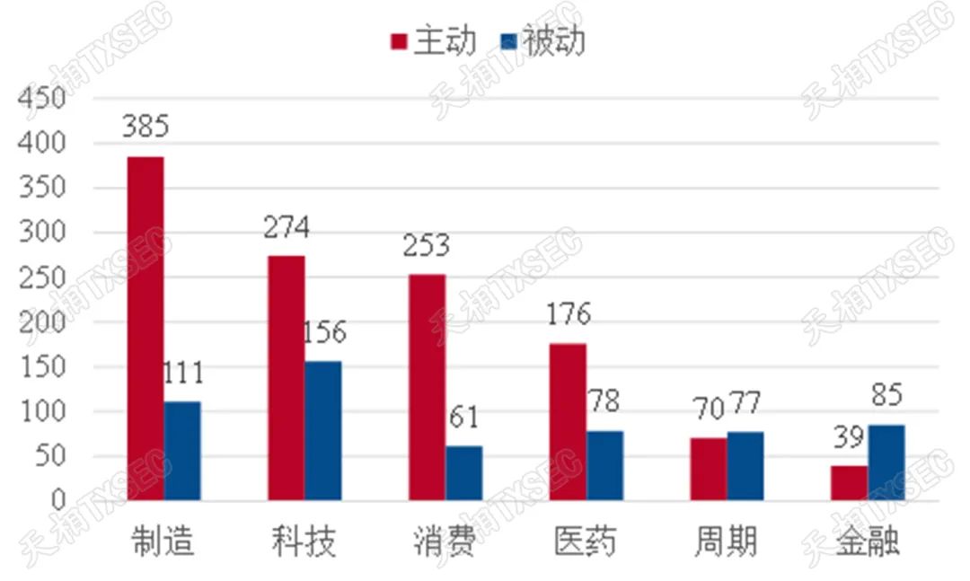 图表 4:各板块主/被动型基金数量
