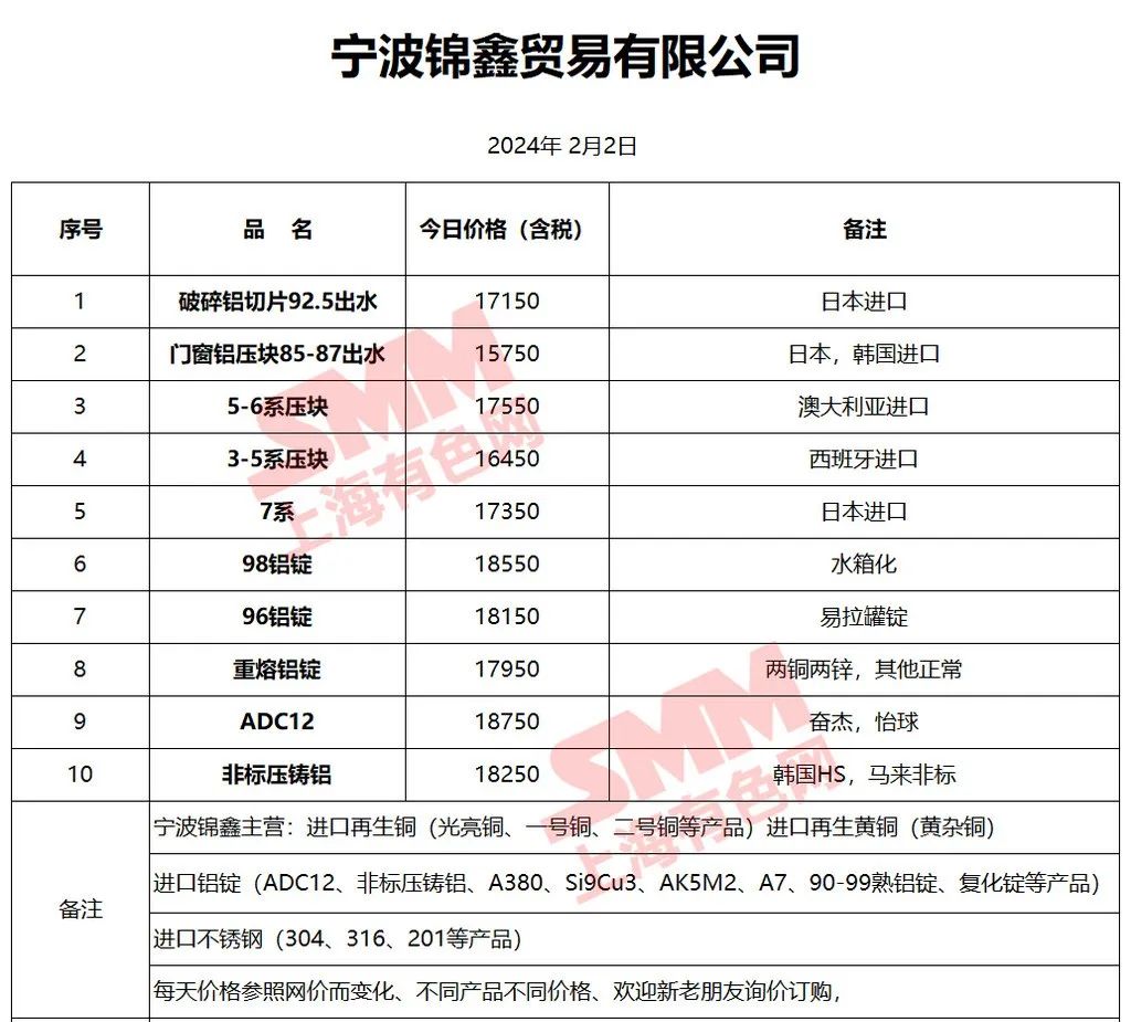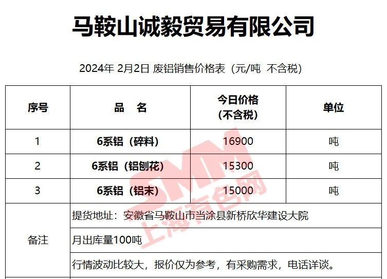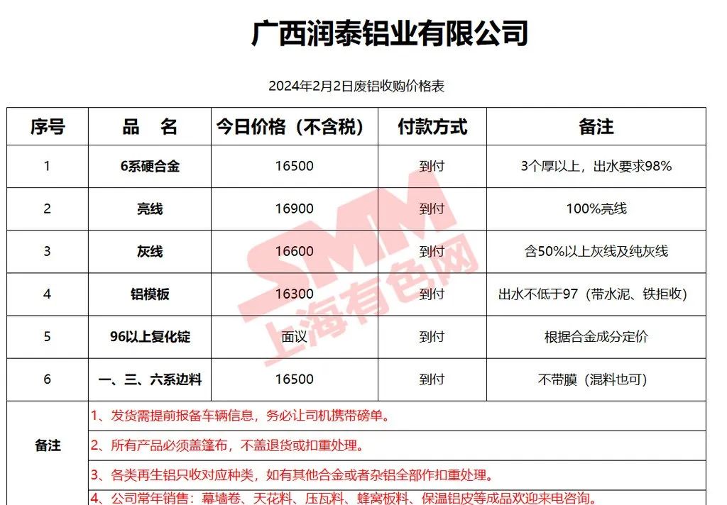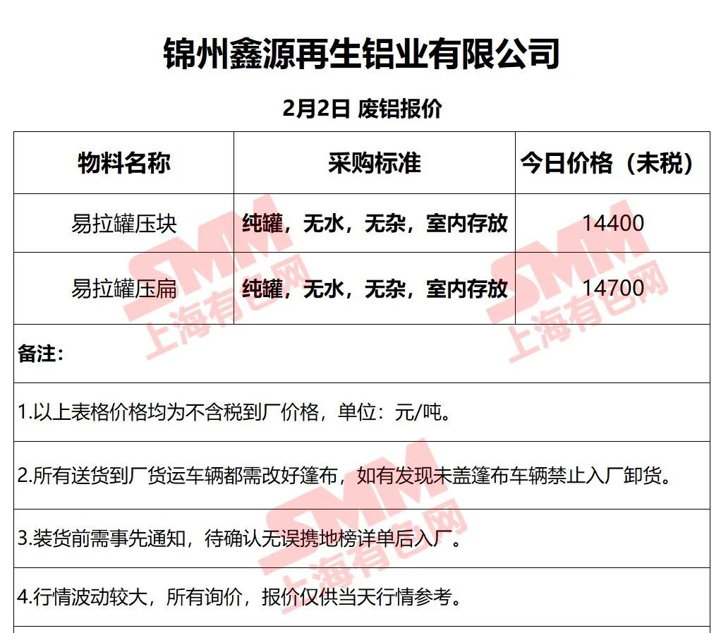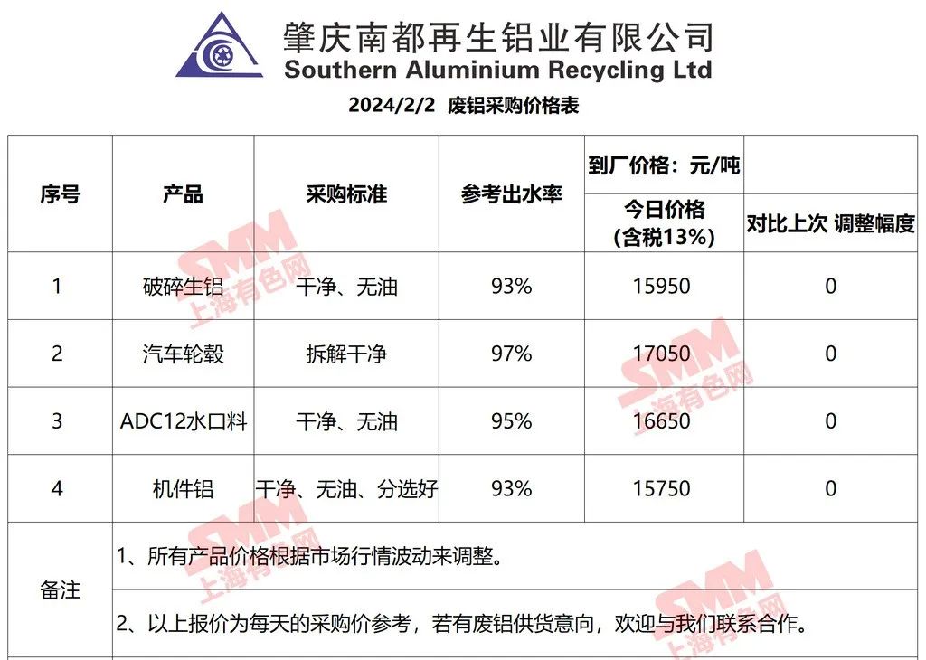 上海有色网(SMM)合作企业的废铝报价更新!您如需查看当日更多企业报价,欢迎下载”掌上有色“APP或扫下方二维码进入"SMM废金属万人群”