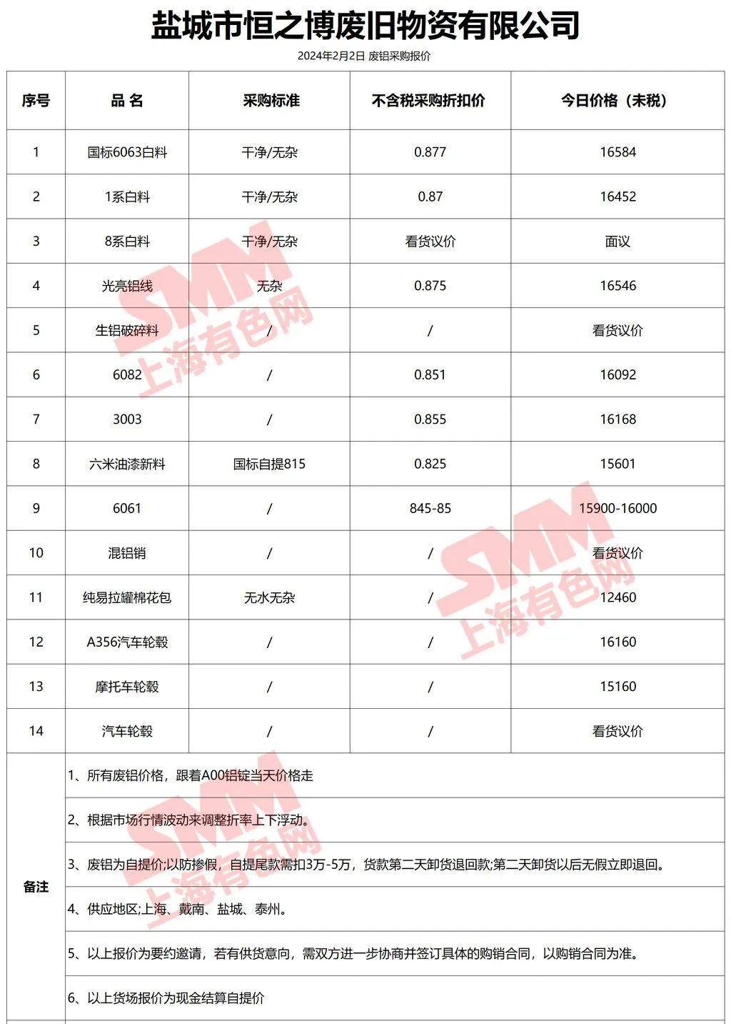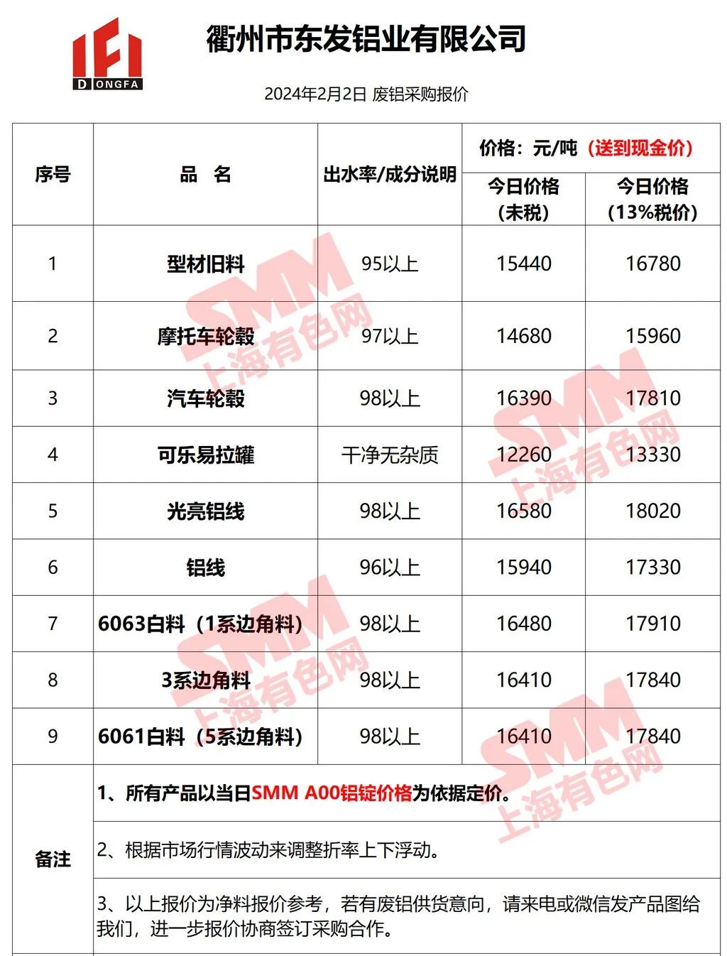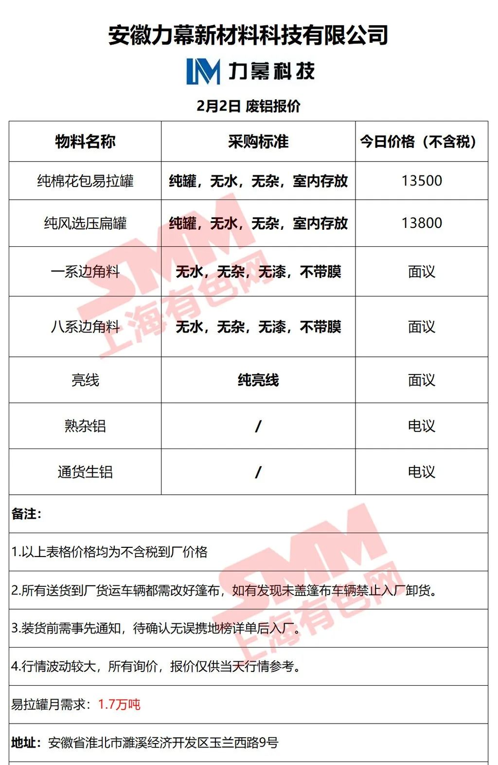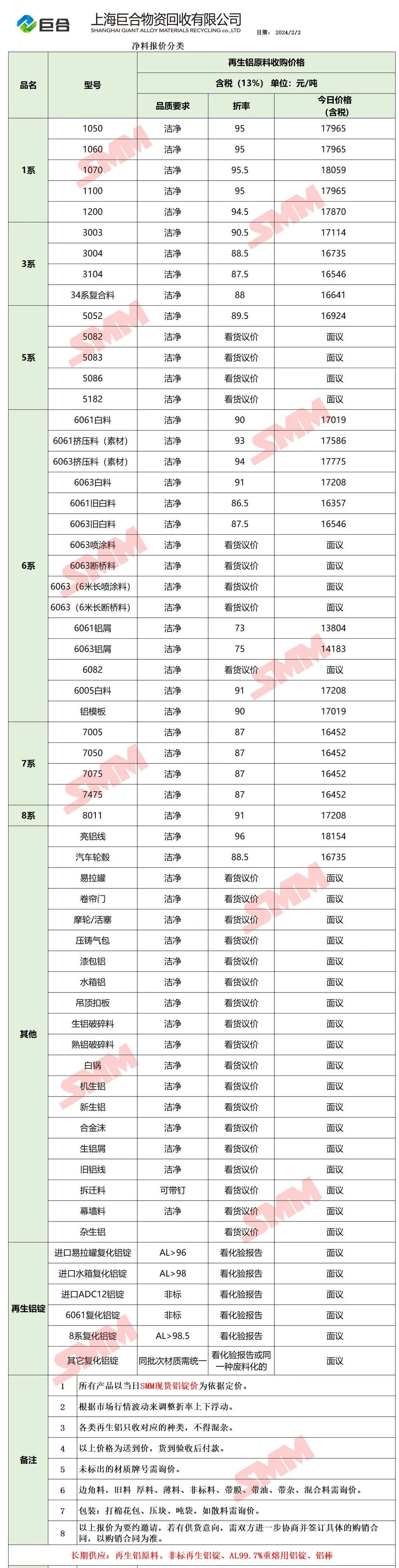 上海有色网(SMM)合作企业的废铝报价更新!您如需查看当日更多企业报价,欢迎下载”掌上有色“APP或扫下方二维码进入"SMM废金属万人群”