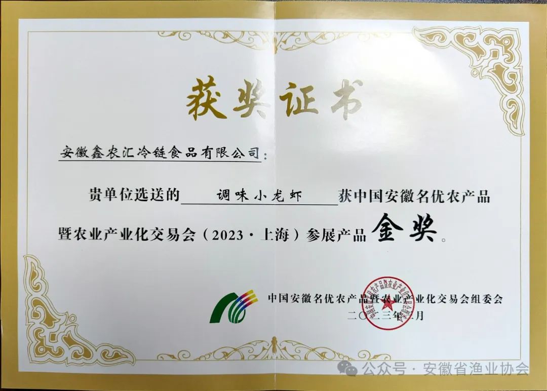 在响应国家粮食安全战略和乡村振兴战略,抢抓长三角高质量一体化发展机遇,推动“稻虾共作”农业产业集群建设的大背景下,全椒县人民政府与安徽省粮食产业集团于2018年10月签订了《稻虾共作产业化项目投资协议书》,安徽鑫农汇冷链食品有限公司在2020年4月孕育而生,成为省属一级企业安徽省粮食产业集团下属子公司,安徽省渔业协会副会长单位。