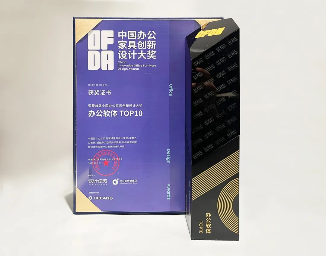 首届中国办公家具创新设计大奖(简称“OFDA”)颁奖典礼,冠美家具凭借优秀设计理念、创新设计成果及精湛的工艺斩获“办公系统top10”和“办公软体TOP10”两大奖项,获得业界内外一致好评。