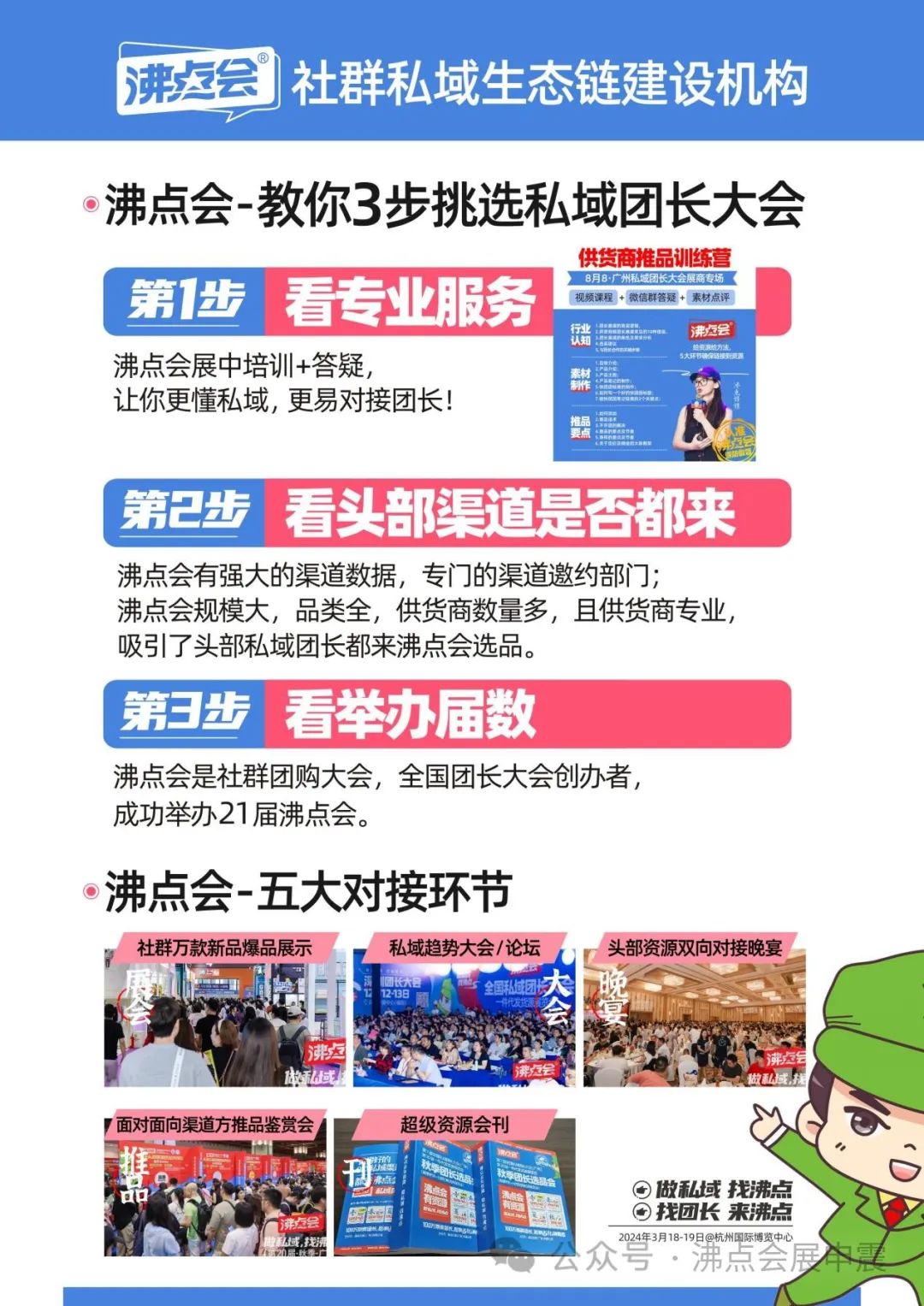 作为本次活动的联合组织方沸点会,有6年的爆款供货商的组织经验和资源,同时,本次爆款供货商的选品对接会也是沸点会2024私域团长选品会!