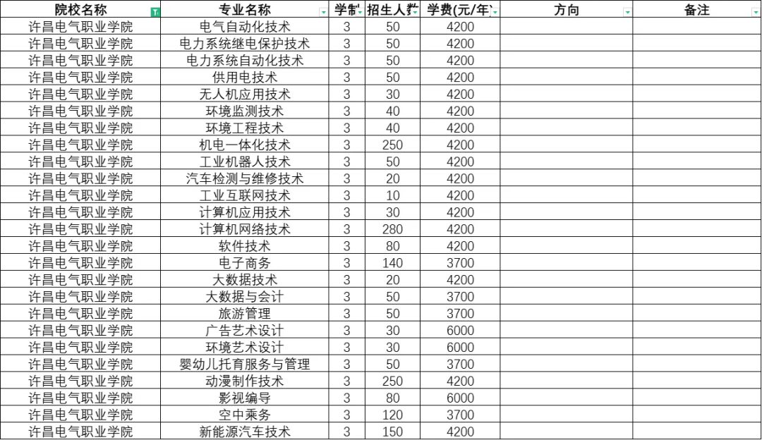许昌电气职业学院(部标代码14350,河南招生代码6385)是经教育部备案,河南省人民政府批准的一所多学科、全日制公办普通高等职业院校。学院实行多层次办学体制,集高职教育和电大开放教育于一体。