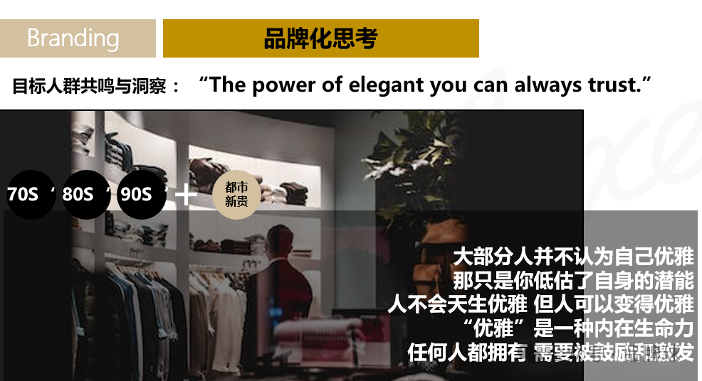 通过有规划、有创意、有节奏的系列品牌创意案,提升品牌在亲和力与影响力,与用户就“优雅”认知产生情感连接。 今年,优雅不再是自我腔调,而是消费人群中一种精神生活的倡导与传递。品牌与门店深度融合,时刻为用户提供不失风格的优雅场景消费。以门店为点,以创意活动为线,构筑年度主题传播面,每位员工都是优雅的代言人。以用户为中心,更通过创意活动强链接,让用户成为我们优雅的伙伴。优雅精神成为践行高质量发展战略的强心剂,让梦想走得更远。