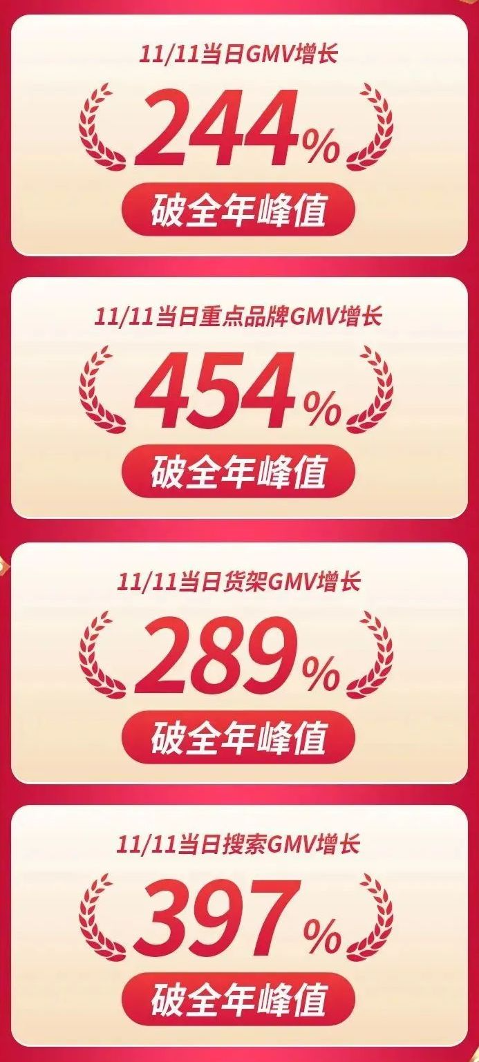 一些数据佐证了「全域兴趣电商」带来的增长机会。仅 11 月 11 日大促当天,抖音电商品牌商家 GMV 增长 244%,重点品牌 GMV 增长 454%,货架 GMV 增长 289%,搜索 GMV 增长 397%,四连破全年峰值。许多中腰部品牌都获得了实打实的增量,参与大促活动的商家数量也实现新增。