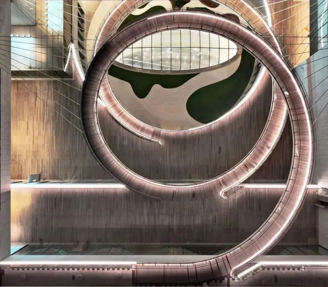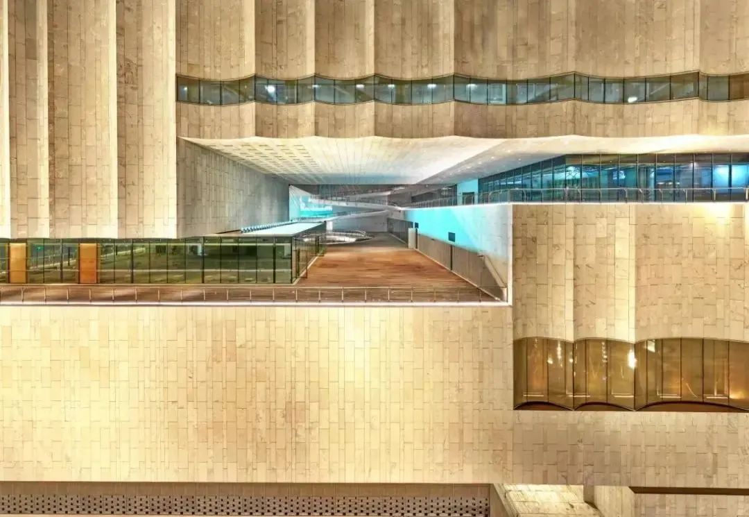 上博东馆强调开放性与共享性,每个楼层都有落地玻璃、平台或户外区域,引入自然光线,让建筑拥有呼吸感。建筑空间分为陈列展示区、公共服务区和配套功能区,约各占三分之一。三者相互依附却各自独立,有单独的安保系统、环境控制系统和流线系统,可以分开运营。除此之外,每个楼层的规划中都配套了观众休憩区、购物或餐饮区以及无障碍设施设备、母婴室等,满足了观众多样化的体验和需求。