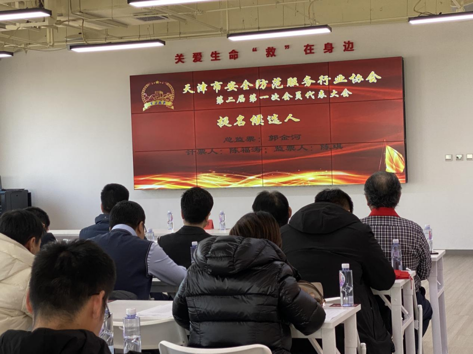 天津市安全防范服务行业协会第二届第一次会员代表大会、第二届会员代表大会第一次理事会,于2023年1月28日在天津市河西区网信大厦23层举行,天津市公安局原二级巡视员张晓鸣、天津市技术监督局原王新局长、天津市保安协会会长李蔚、天津市安全防范服务行业协会党组织书记裴兵、天津市安全防范服务行业协会秘书长陈宇同志出席会议。