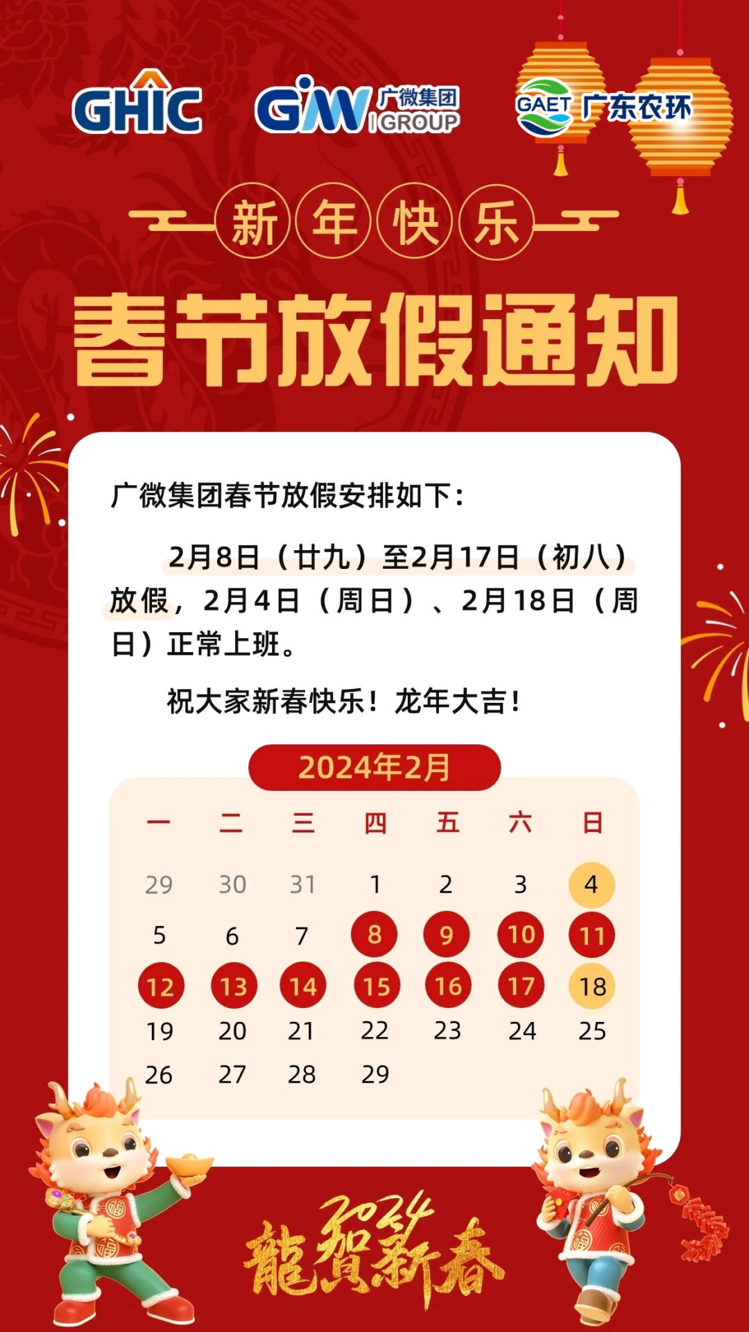 农环公司春节放假通知