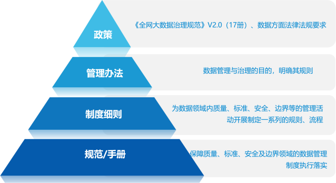 根据国家法律法规、行业标准,结合集团公司规范和公司实际,山东公司制定并完善了《数据架构管理办法》《大数据开发规范》《数据开放管理办法》《数据质量管理操作细则》等47项制度规范,贯穿数据采集、存储、加工、开放全流程,让数据管理的每一步都有规可循、有章可依,以完整、高效、安全的数据管理制度体系为数据价值释放奠定制度基石。