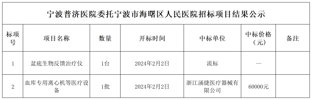 以上是宁波普济医院委托宁波市海曙区人民医院招标项目的评标结果,现予以公示,如相关单位对招标结果有异议或有投诉意见,请于2024年2月2日起一周内联系院监督部门,联系电话:0574-87559811。