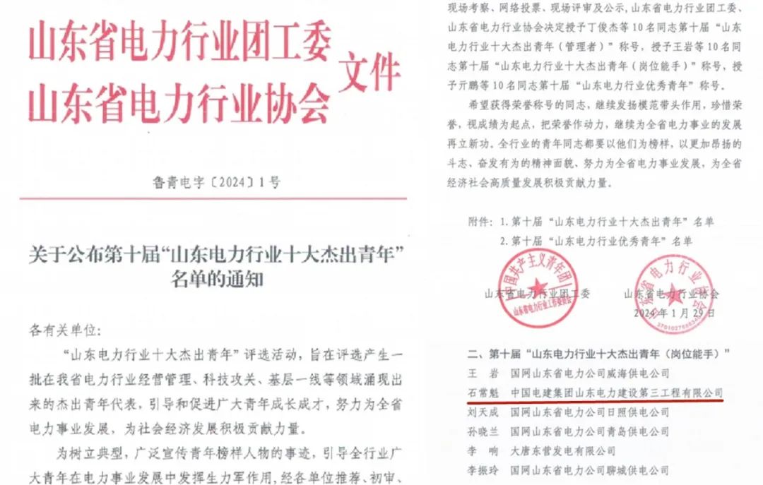 1月29日,由山东省电力行业团工委、山东省电力行业协会主办的第十届“山东电力行业十大杰出青年”评选结果正式揭晓。公司海外事业部副总经理石常魁同志荣获第十届“山东电力行业十大杰出青年(岗位能手)”荣誉称号。