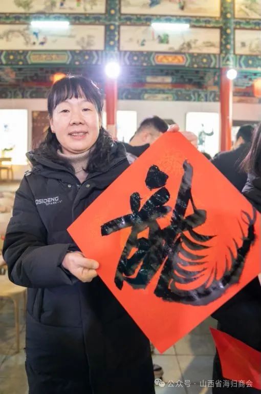 活动中,为小井峪街道75户群众发放米面油等慰问品并致以节日的祝福和新春的问候。特邀30位知名书法家在小井峪古戏台、东风社区党群服务中心现场挥毫泼墨,写下寓意美好的春联和形态各异的“福”字,以笔墨之情将新春祝福传递到居民手中,现场热闹非凡,充满浓浓的年味和喜庆的气氛。