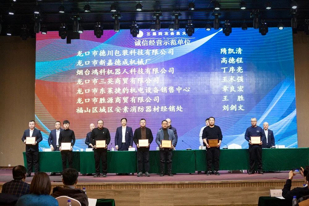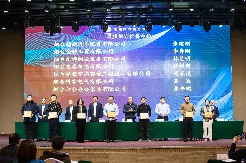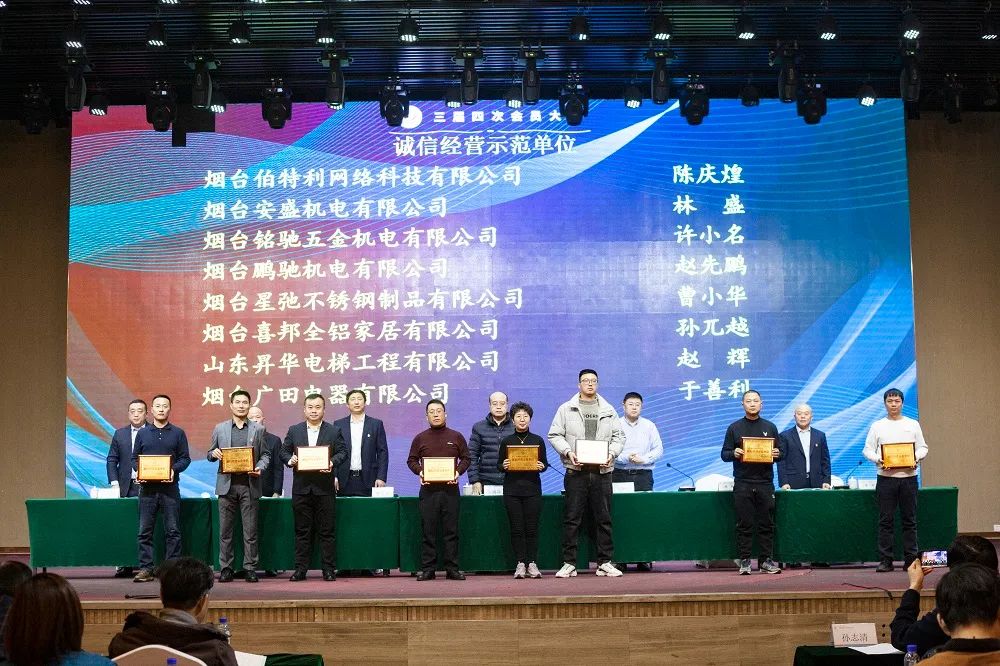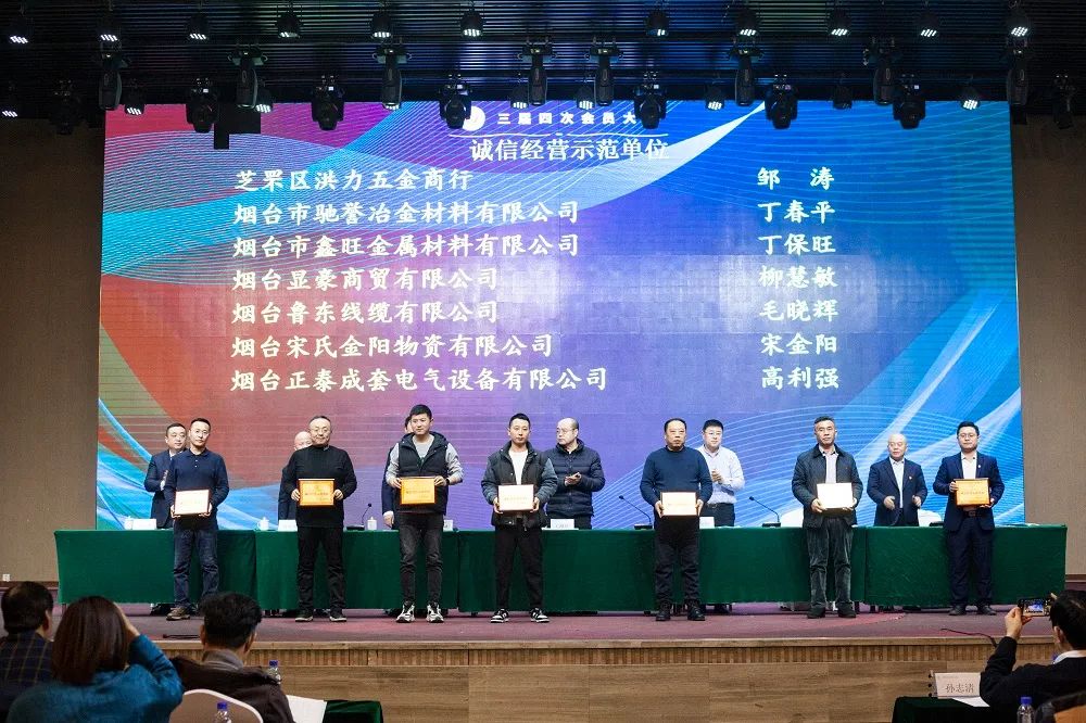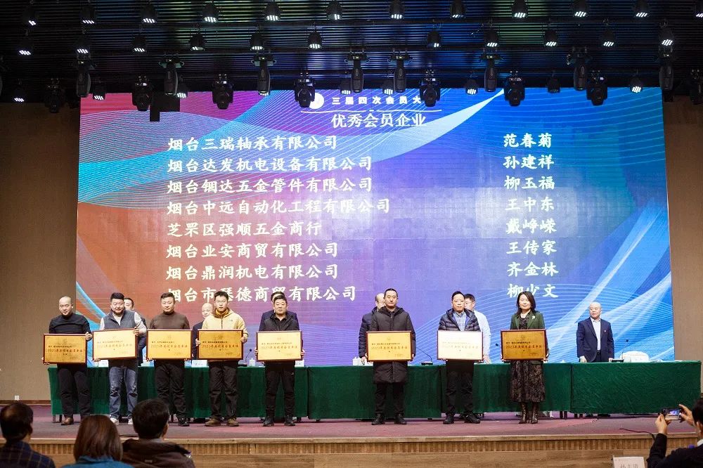 2023年12月29日上午,烟台市五金机电商会在尚美爱琴海酒店召开三届四次会员大会.烟台市工商联合会党组成员、副主席王海兵、烟台市民政局社会组织管理局局长赵铭锴、烟台市非公党办主任杨君,以及各兄弟商会相关负责人、媒体代表出席参加了本次会议。