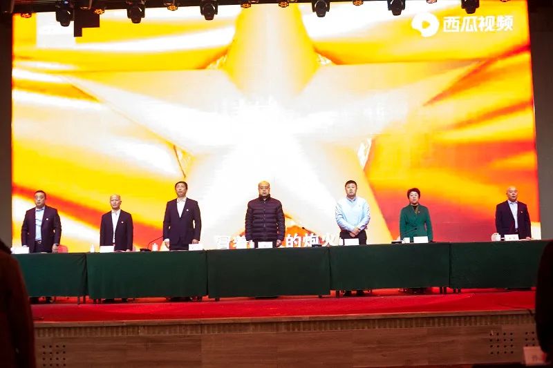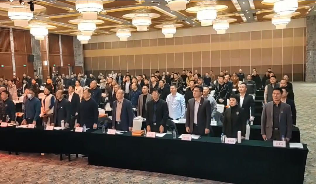 在雄壮的国歌声中会议拉开了序幕。