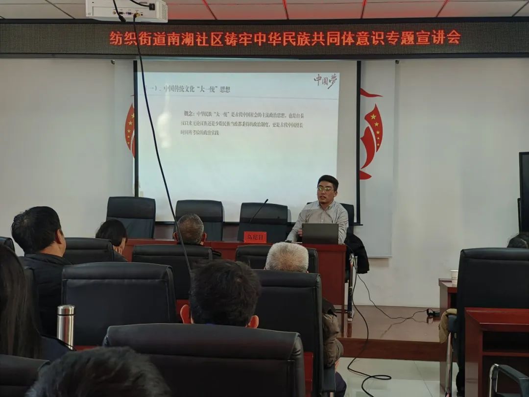 铸牢中华民族共同体意识是全党全国各族人民的共同任务,其中开展宣传教育尤为重要,为进一步提高辖区各民族群众的团结意识,1月29日,南湖社区开展铸牢中华民族共同体意识专题宣讲会,特邀东胜区委党校乌尼日老师为辖区居民群众及学生宣讲,通过宣讲党的民族思想、理论及政策,让大家明白只有民族团结、守望相助,民族复兴的伟大梦想才能顺利实现,鼓励大家参与到铸牢中华民族共同体意识的工作中来,让铸牢中华民族共同体意识深入人心。