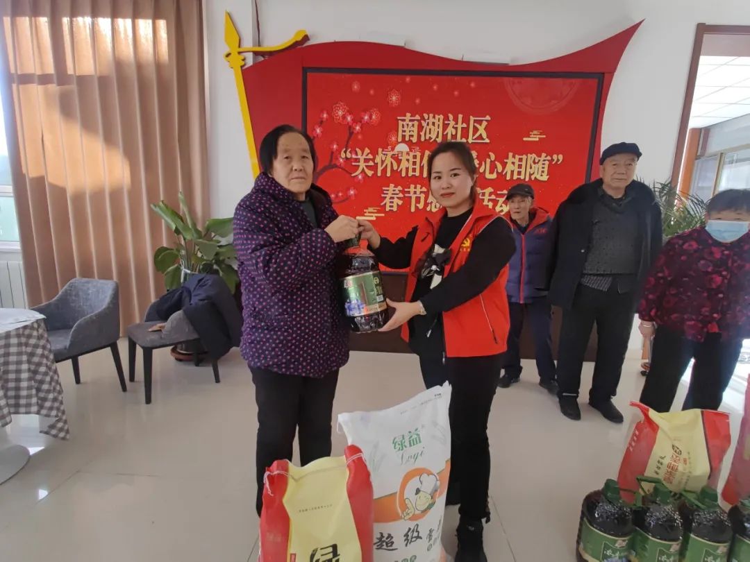 为进一步弘扬中华民族传统美德,体现对困难居民群众的重视与关怀,充分营造关爱互助的良好社会氛围,1月26日,南湖社区开展“关怀相伴 爱心相随”春节慰问活动,社区工作人员与困难居民们亲切交谈,详细询问了他们的身体状况和家庭生活情况,倾听他们的心声,随后为他们送上节日的祝福,将米面油等慰问品送到每个人的手中,叮嘱他们要保重身体,社区会为他们提供更多的帮助和支持。活动共为辖区52户辖区低保特困居民送去了慰问品。