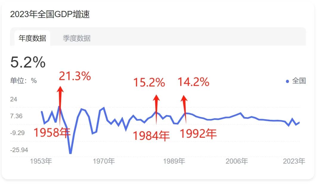 其实说到底,加入WTO之前,咱们国家经济总量全球占比太低,没有话语权,漂亮国用美元、关贸协议和航空母舰控制着全球贸易,我们不走出国门,经济难有质的飞跃,再则,1984年和1992年的繁荣存在巨大的泡沫,同时期的通货膨胀率都超过25%。