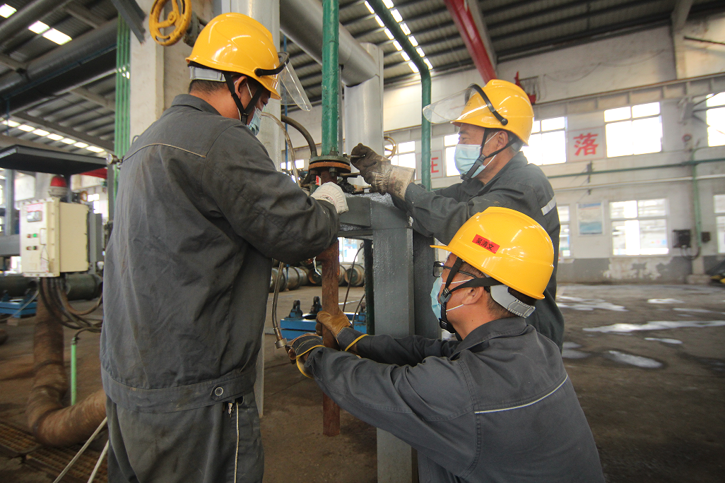 氯碱厂液氯维修人员更换1号秤真空支管