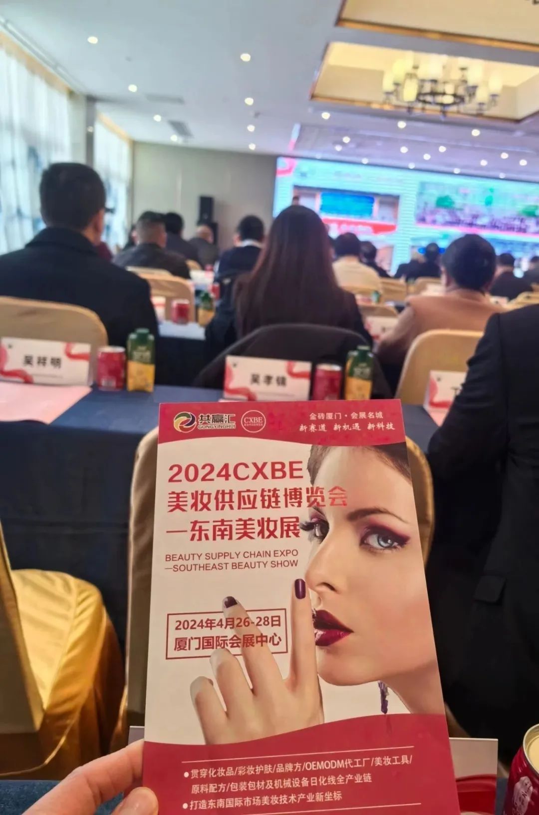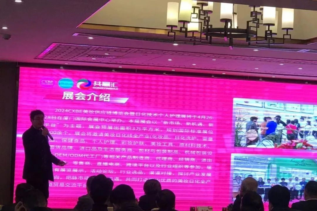 会议分享环节中,CXBE美妆供应链创新展组委会代表向参会嘉宾介绍了2024年厦门美妆展的筹备情况。2024CXBE厦门美妆供应链博览会暨日化技术个人护理展(简称:CXBE美妆供应链创新展)将于4月26日-28日在厦门国际会议展览中心(思明区会展路198号)举办。为充分做好2024CXBE美妆日化技术展的筹备工作,进一步提升展会的实效性、影响力、专业性,组委会于2023年11月1日启动展会的前期宣传和招商。