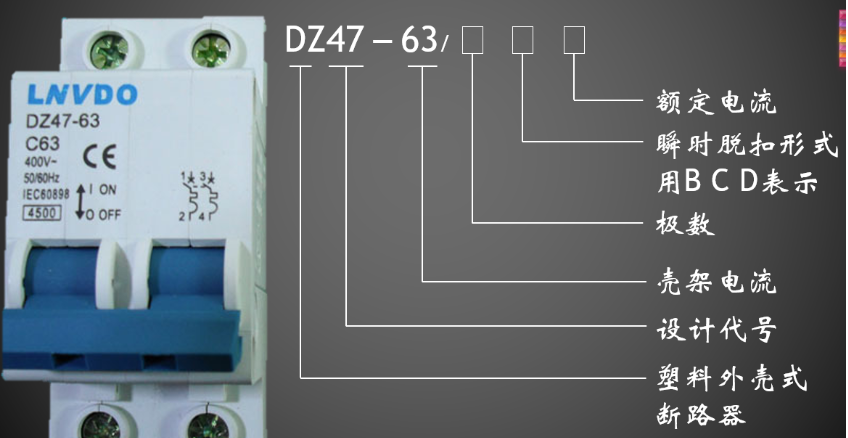 我们知道63是额定电流,那C代表 什么意思?C是代表断路器瞬时脱扣特性,分有B、C、D型;