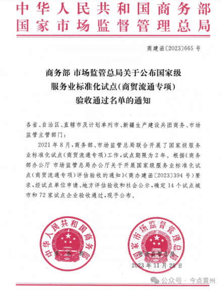 农业领域,已建设核心农业示范基地2个、叶路大蒜繁育基地1个、核心生产示范基地冷库1个。服务业领域,黄商通过ISO“四合一”管理体系认证复核、完成国家级标准化试点项目创建;德尔福通过“黄冈老字号”认证。
