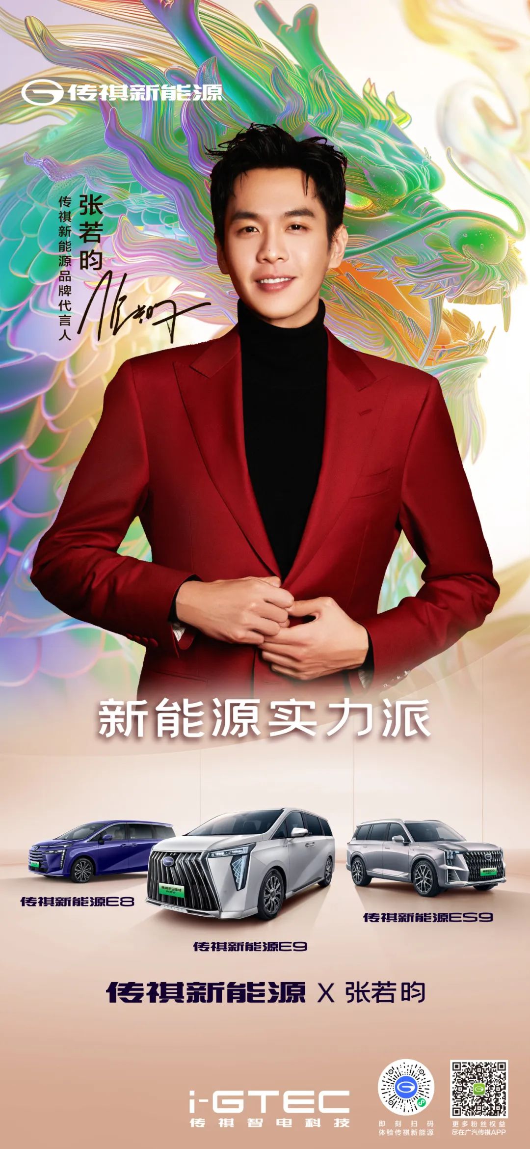 龙年一“祺”行好“昀”。随着张若昀正式出任传祺新能源品牌代言人,两大“实力派”联手,2024年必将好戏连连。让我们共同期待和见证,传祺新能源和张若昀的每一个里程碑时刻和无限新可能。