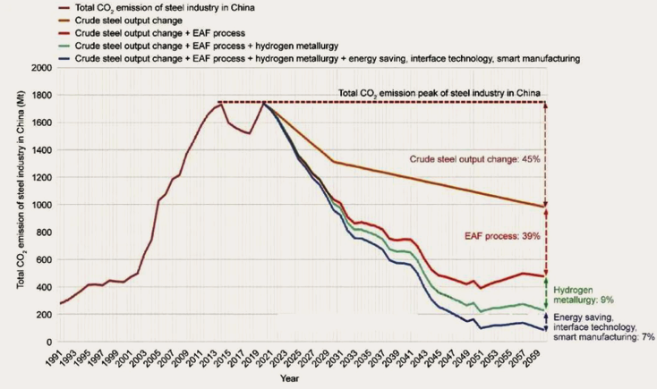 图1 中国钢铁行业实现碳中的技术路线图