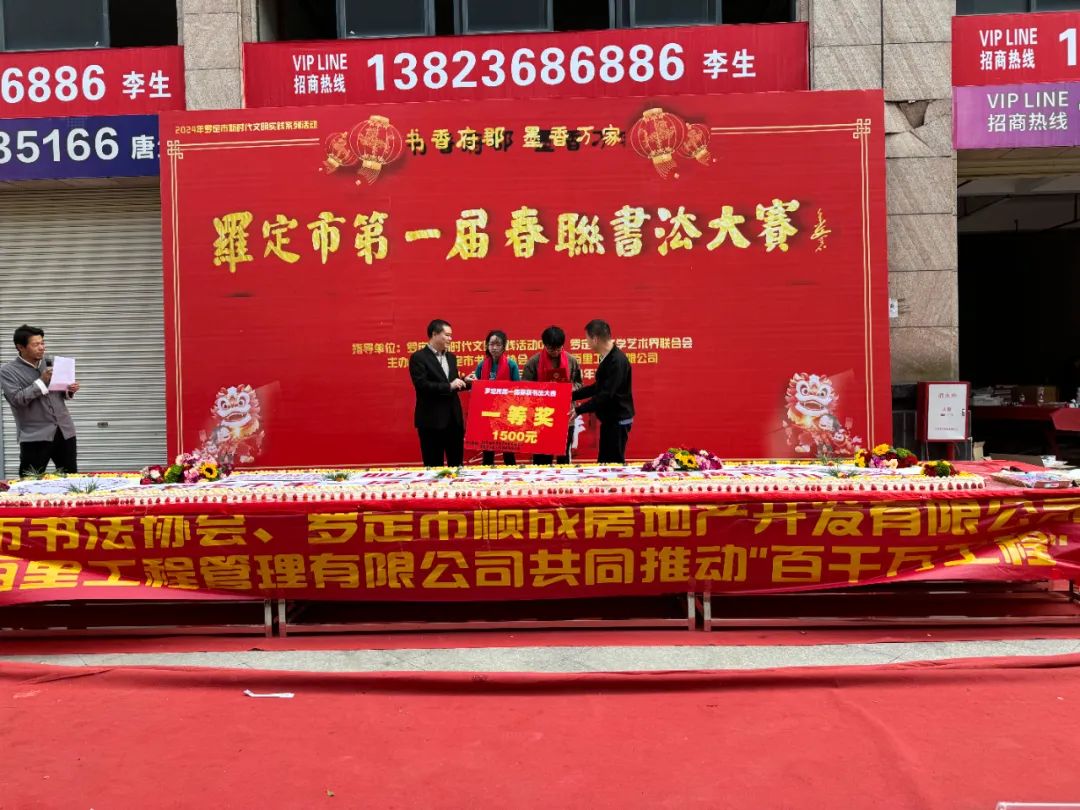 在文化艺术方面,我会李金才会长于2月1日至3日出席了在罗定泰德金街举行的罗定市第一届春联书法比赛,并热心赞助9000元支持活动的顺利开展。经过参赛选手的激烈角逐,赛事最终决出各个奖项,李金才会长为获得一等奖的选手颁发了荣誉证书和奖品。这一举措不仅体现了商会对传统文化艺术的支持,也激发了更多市民对书法艺术的热爱和参与。