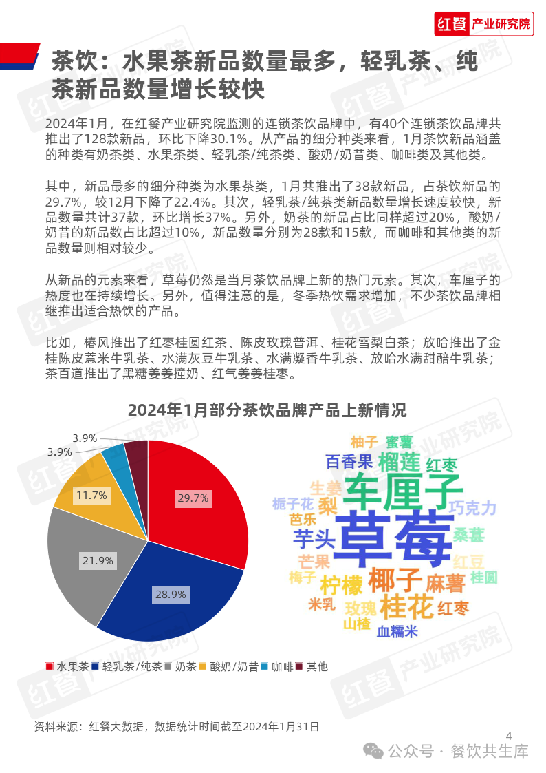 茶饮:水果茶新品数量最多,轻乳茶、纯茶新品数量增长较快