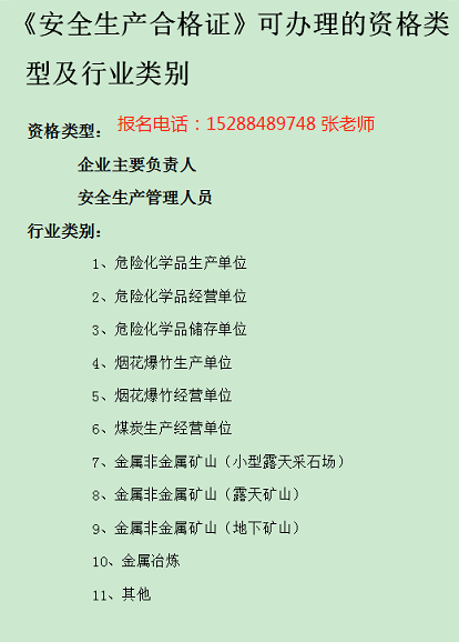 适用于工贸企业,分为主要负责人和管理人员两大类。由昆明市安全生产协会颁发,证书全称:安全生产培训合格证。